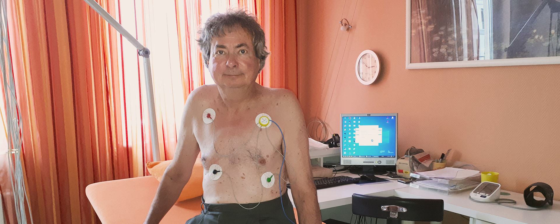 Neben der Blutdruckmessung nutzen wir auch den Langzeit-EKG-Recorder, ein tragbares Gerät, das die elektrische Herzaktivität bis zu einer Woche dokumentieren kann. Er zeichnet kontinuierlich die Impulse des Herzens auf, speichert diese Daten und ermöglicht dadurch das frühzeitige Erkennen von Herzrhythmusstörungen oder anderen Unregelmäßigkeiten.
